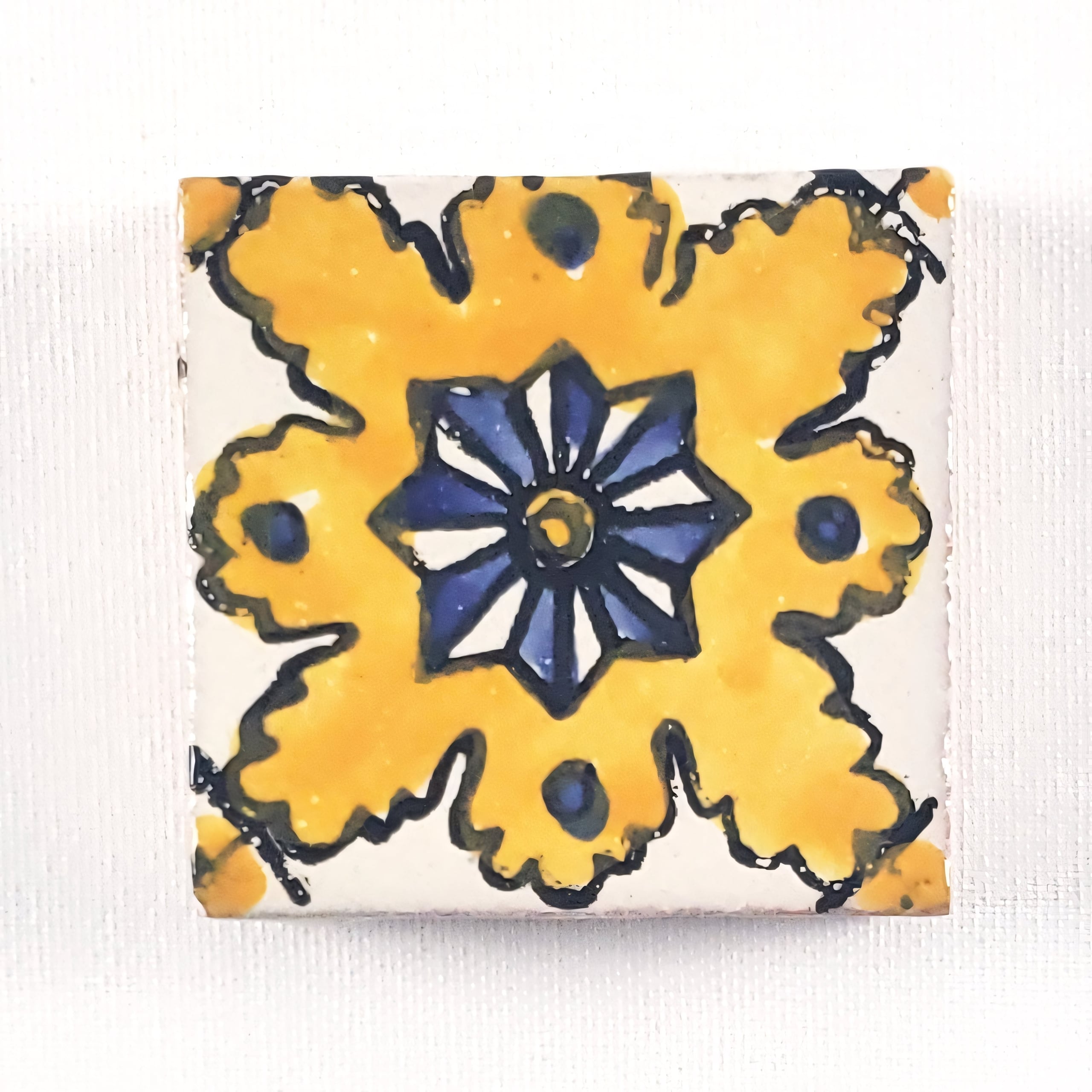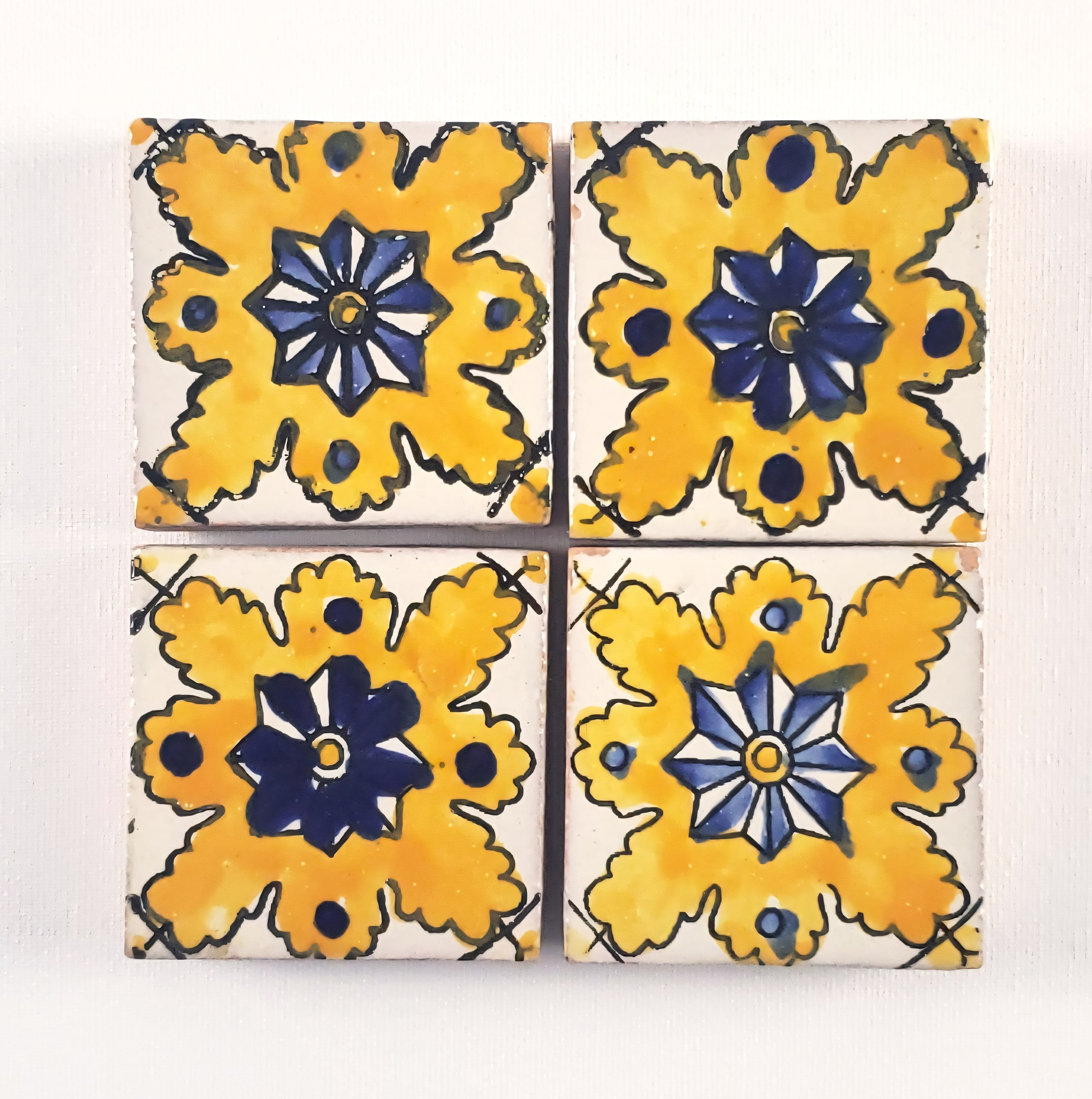 Tiles are hand made and hand painted. Variations in size and color may happen. Please inquire for a sample of current stock.